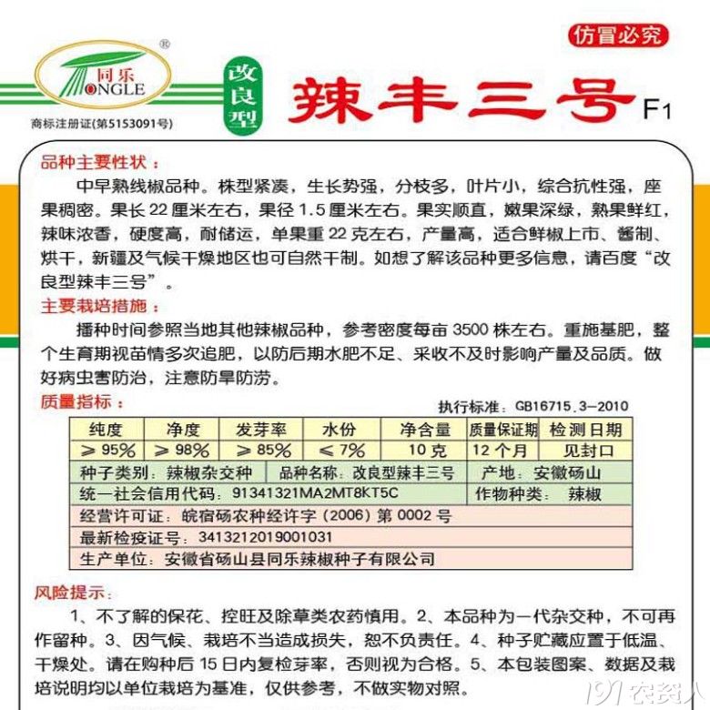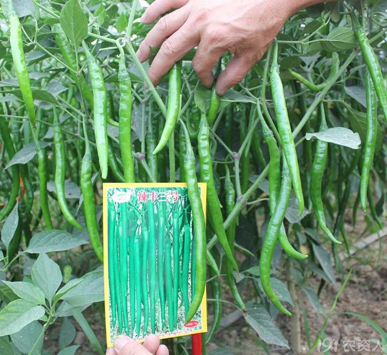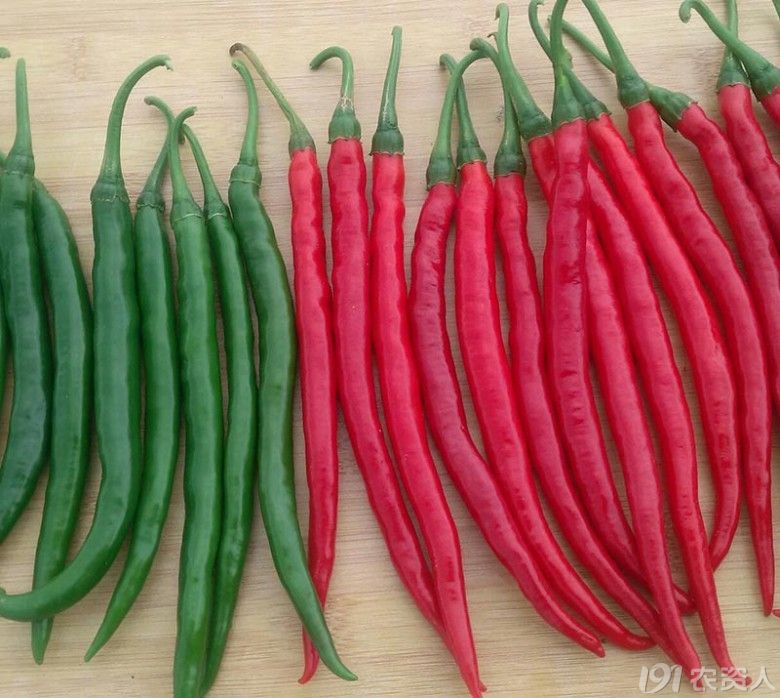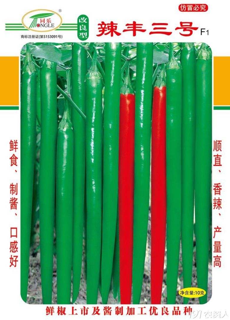 改良型辣丰三号属中熟线椒品种。植株生长势较强,株型好,分枝多,叶片小,果顺直,长22厘米左右,果宽约1.5厘米。青果深绿色,老熟果红色鲜艳,果实硬度好,耐储运,单果重22克左右,辣味浓香,坐果性好,综合抗性强,适合藓椒上市或酱制加工。如想了解该品种更多信息,请百度“改良型辣丰三号”。