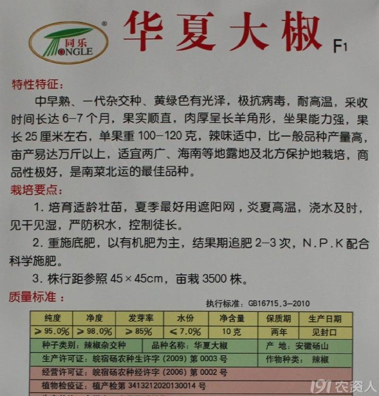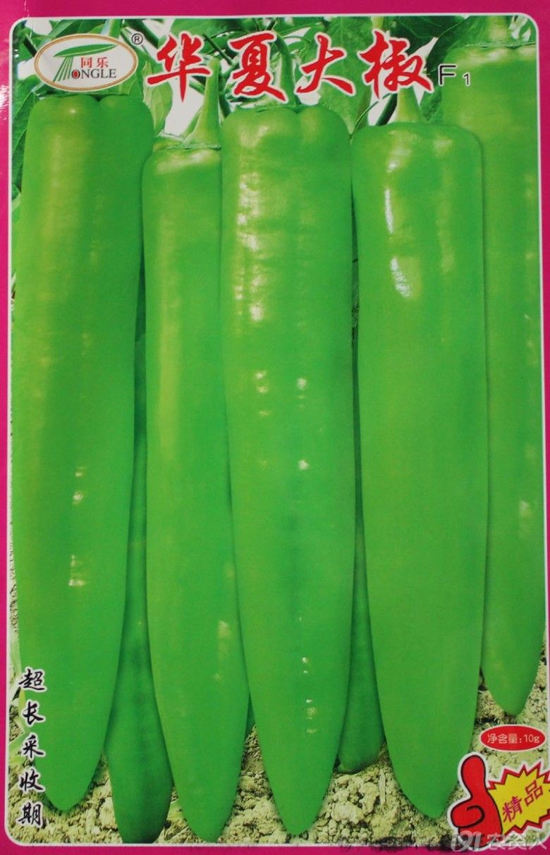 华夏大椒中早熟、一代杂交种,黄绿色有光泽,抗病强、耐高温,采收期长,果实顺直,肉厚呈长羊角形,座果能力强,果长25厘米左右,单果重100克左右,辣味适中,商品性好,耐储运,适合南方露地北方保护地栽培,高产田可达万斤。百度“华夏大椒”即可了解该品种更多特性。