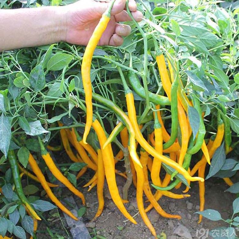 经同乐辣椒研究所科研人员多年努力,终于培育出了超高产黄色线椒新秀黄帝线椒。由于黄帝线椒色泽艳丽,果型美观、辣味极高,熟果色形似黄金长条,更与皇帝外衣颜色接近,果品珍贵稀少,卖价较高,为此,人们又把该品种称为“黄帝线椒”和“黄金条椒”。如想了解该品种更多信息,请百度“黄帝线椒”。