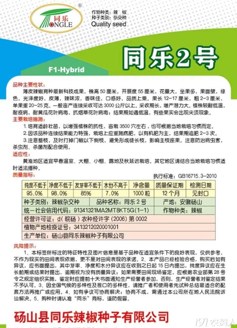 同乐2号是一代杂交皱皮椒种子,株高50厘米,开展度55厘米,坐果稠密,果皮绿色,果面褶皱,光泽度好,辣味浓香,皮薄,口感好,品质上乘。果长12-17厘米,果径2-3厘米,单果重20-25克。采收期长,增产潜力大,一般亩产连续采收可达3000公斤左右。较耐低温,抗病性强。结果期温度过低,有些果实会出现尖顶现象。百度“同乐2号皱皮椒”了解该品种更多信息。
