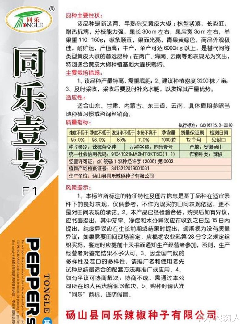 同乐壹号是早熟杂交黄皮大椒,株型紧凑,长势旺,耐热抗病,分枝能力强,果长30cm左右,果肩宽3cm左右,单果重100-150g,椒条顺直,果色黄绿光亮,外观靓丽,耐贮运,亩产可达万斤,是替代同等类型黄皮大椒的理想品种。适应性强,全国省区均可种植。百度“同乐壹号”即可了解高品质更多特性。