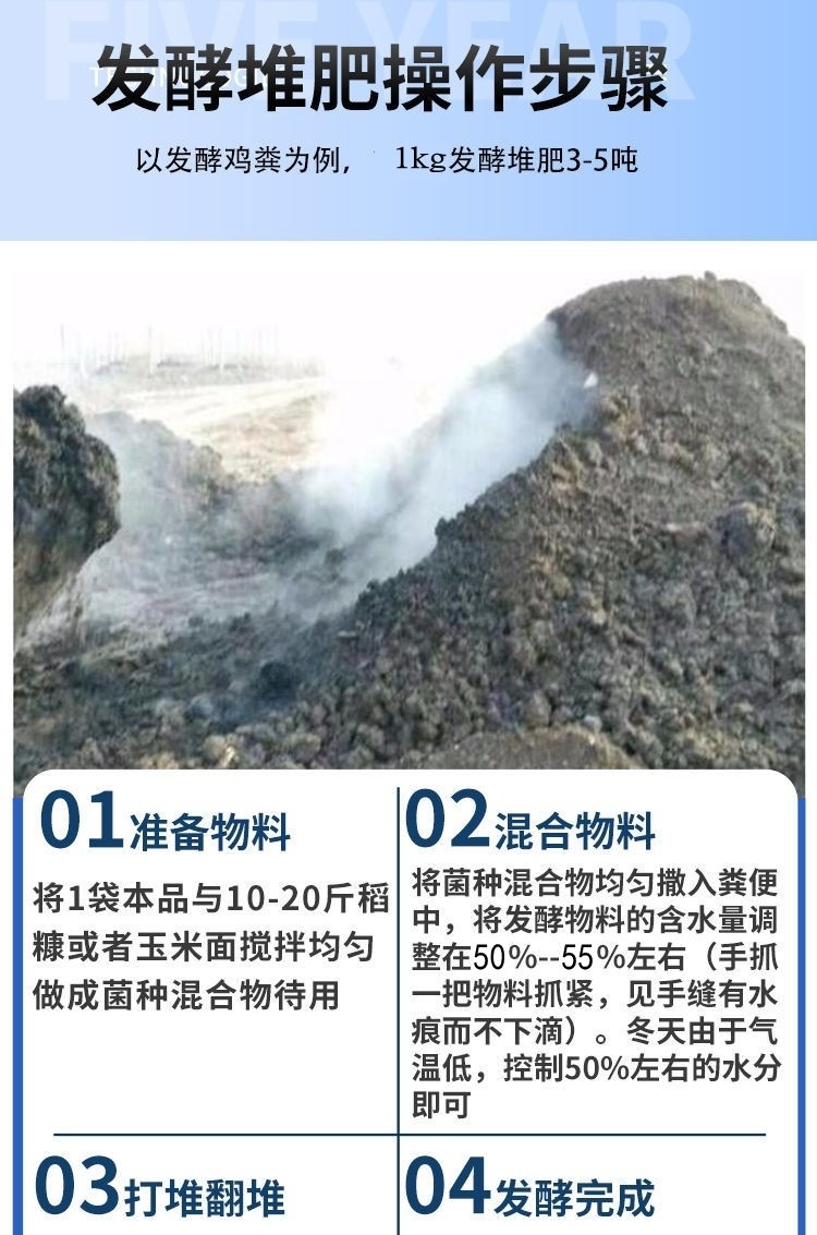 步骤五:拌匀通气。这是堆肥发酵,一定要好氧发酵才行,所以在发酵过程中应加大供氧措施,打堆不宜压紧,保持自然疏松,打堆后可以用棍子在粪堆上戳些洞,做到拌匀、勤翻、通气为宜,否则会因为厌氧发酵影响物料发酵效果。