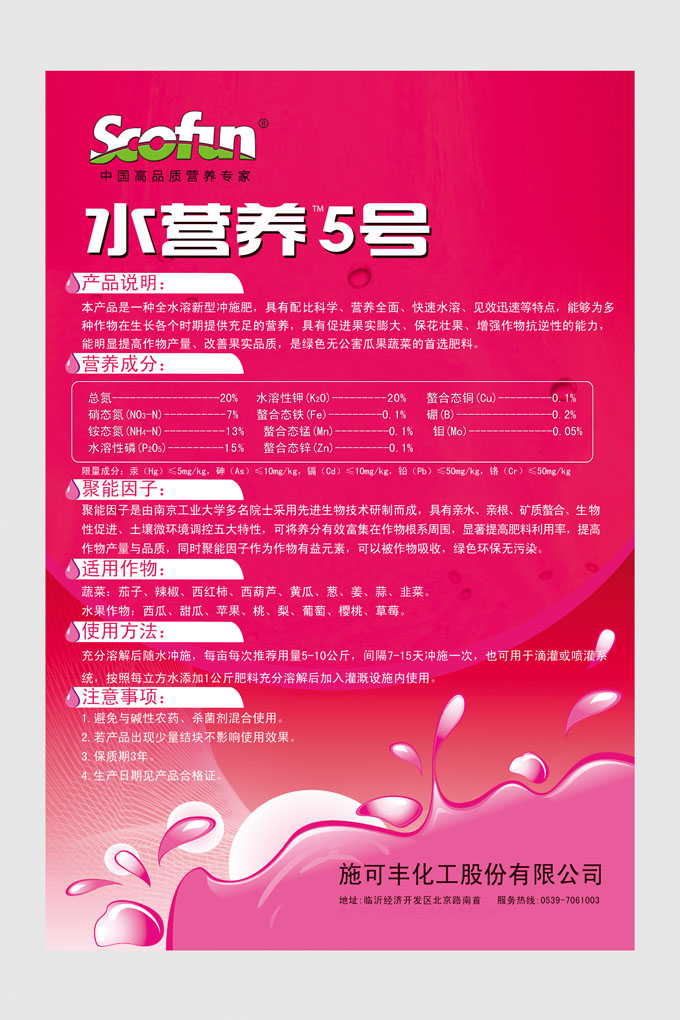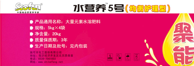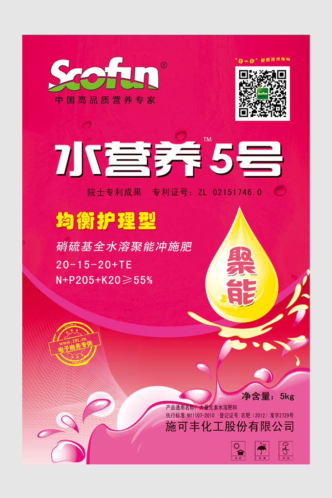 水营养5号20-15-20,硝硫基全水溶聚能冲施肥,N+P2O5+K2O≥55%