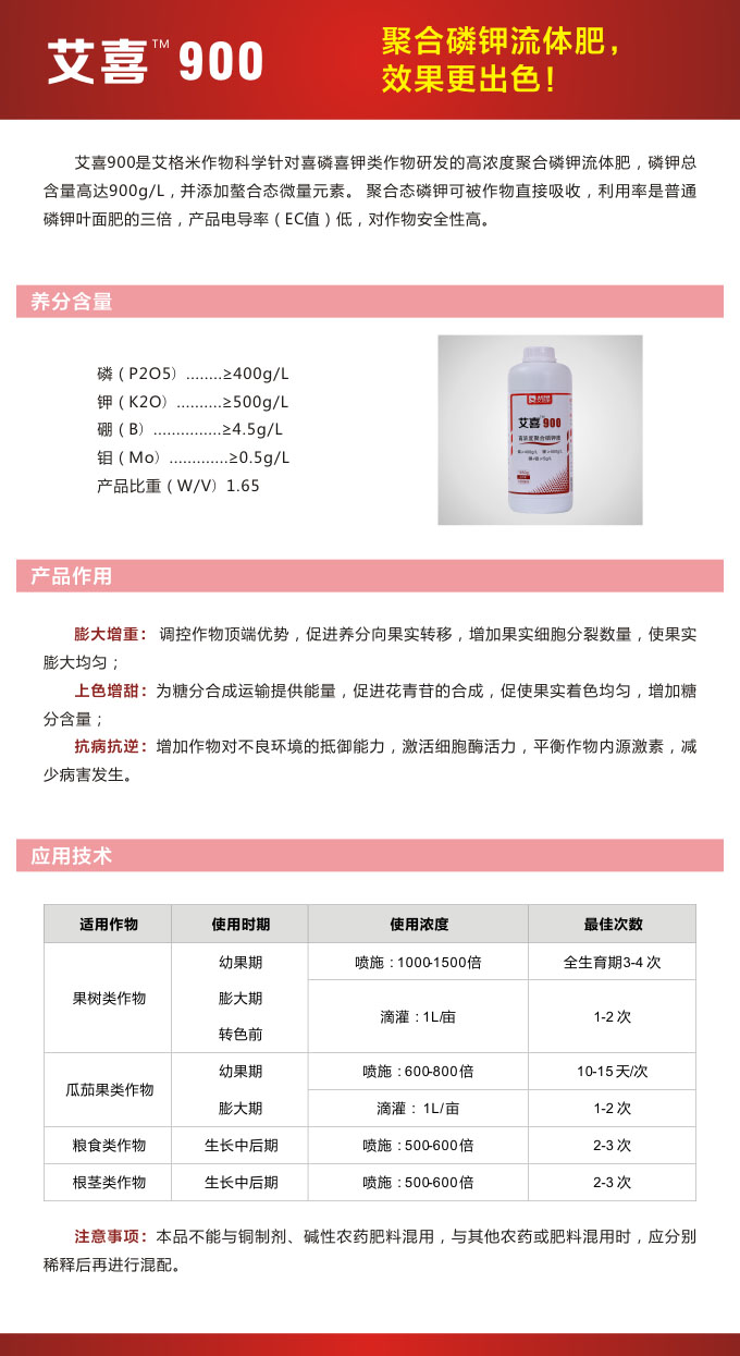 艾喜™ 900(聚合磷钾流体肥)磷(P2O5)≥400g/L钾(K2O)≥500g/L