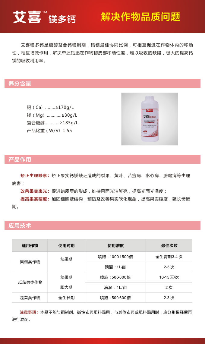 艾喜™ 镁多钙(糖醇螯合制剂)钙(Ca)≥170g/L 镁(Mg)≥30g/L