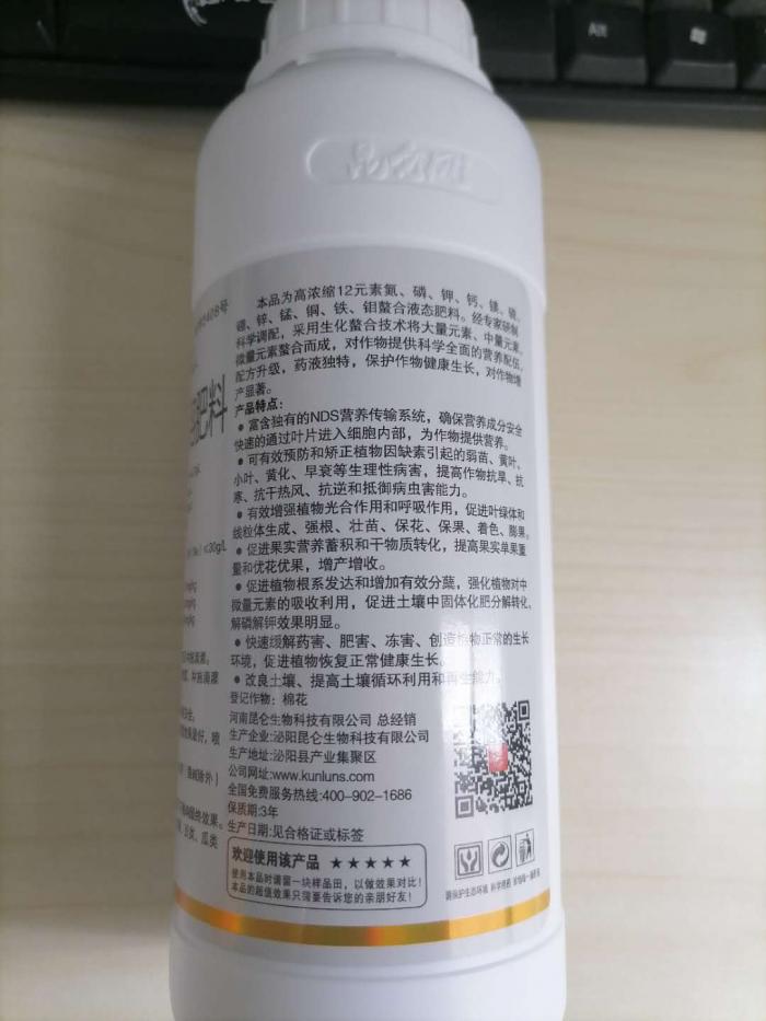 本品为高浓缩12元素氮、磷、钾、钙、镁、硫、硼、锌、锰、铜、铁、钼螯合液态肥料。经专家研制、科学调配,采用生化螯合技术将大量元素、中量元素、微量元素螯合而成,对作物提供全面的营养配伍,配方升级,药液独特,保护作物健康生长,对作物增产显著。