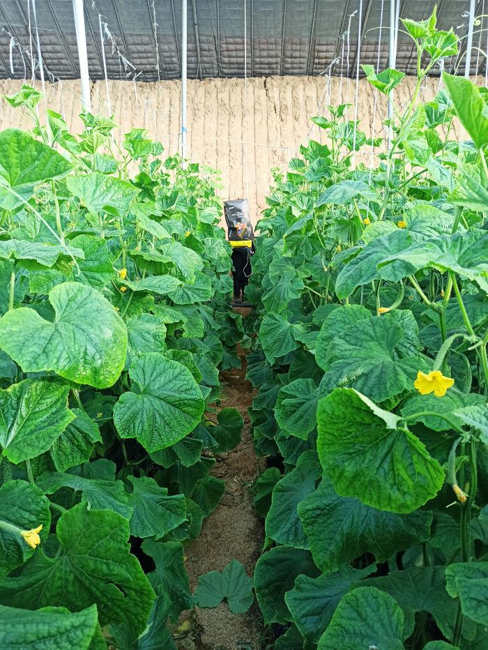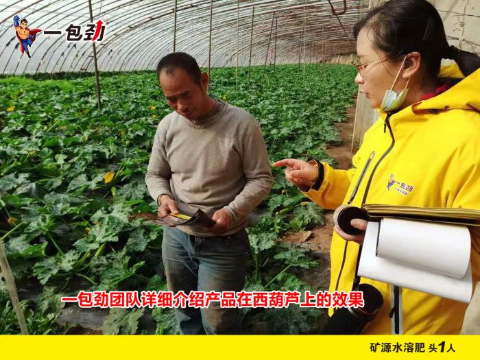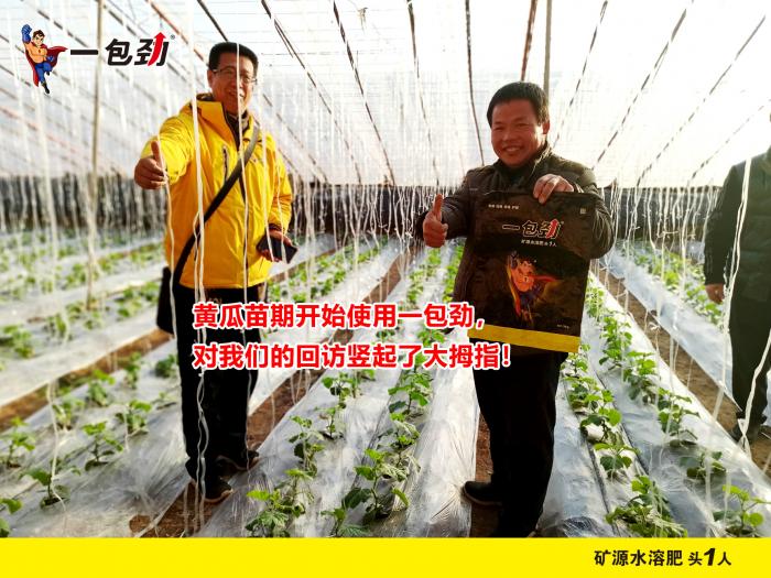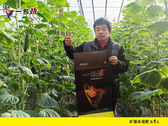 用过一包劲®的客户说:“一包劲®在黄瓜上冲施滴灌11天后,小瓜一甩很出正劲,叶子也舒展开了,叶片柔软厚实,瓜也贼亮,瓜上的刺都扎手,单根黄瓜40厘米,长势很喜人。”