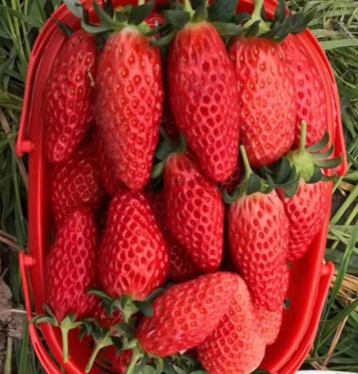 生产上要根据果子大小,选择钾含量不同的肥料,随着果子的生长,钾含量随之提高。一般可在果实蚕豆大小时,追施一次高钾水溶肥(每亩5kg),每10-15天施肥一次,连续追施2-3次。此时期追施钾肥可促进幼果快速膨大,延长采收期,让草莓吸收更多的光照,积累更多的养分,进而提升甜度。