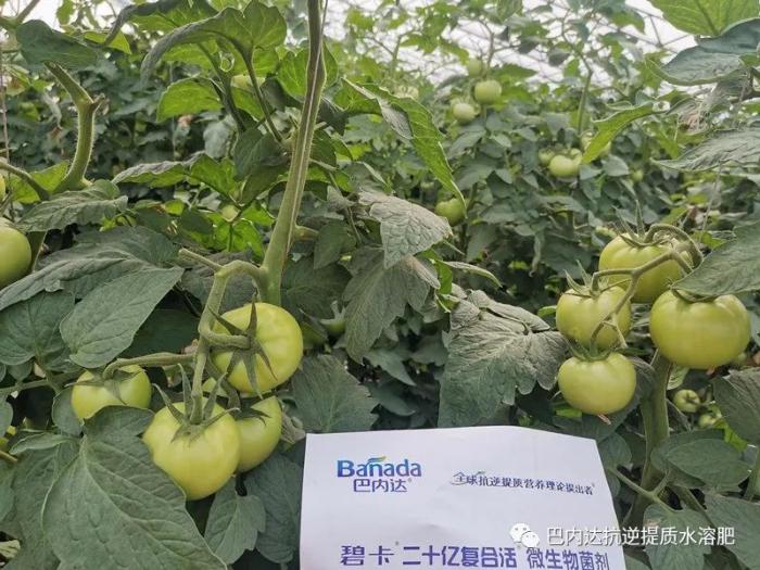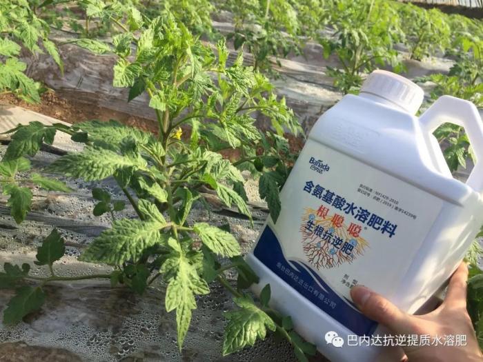番茄需肥应以氮元素为主,建议使用高氮水溶肥进行冲施,以促进枝叶、茎秆生长;同时可使用碧卡黄金套餐组合(碧卡根聪聪+微生物菌剂),预防土传病害、黄化的发生,并促进番茄生根,解除前茬药害,使用根系吸肥能力更强。
