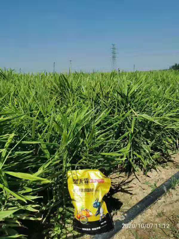 3、大姜种植底肥一定要施足充分腐熟的有机肥,并根据不同生育期追施适量的钙镁硼锌等中微量元素肥。大姜根系弱、扎根浅、不耐旱也不抗涝,所以要保持土地肥沃、土壤湿润。田间冲施或撒施聚无霸矿源黄腐酸钾兑水300~500公斤水,提高土壤肥力,补充有机质,有利于大姜生长发育。大姜施肥后要及时浇水,一方面可以预防肥料浓度过高烧苗烧根,另一方面能够使肥料快速分解被大姜吸收利用,可以提高肥料有效利用率。