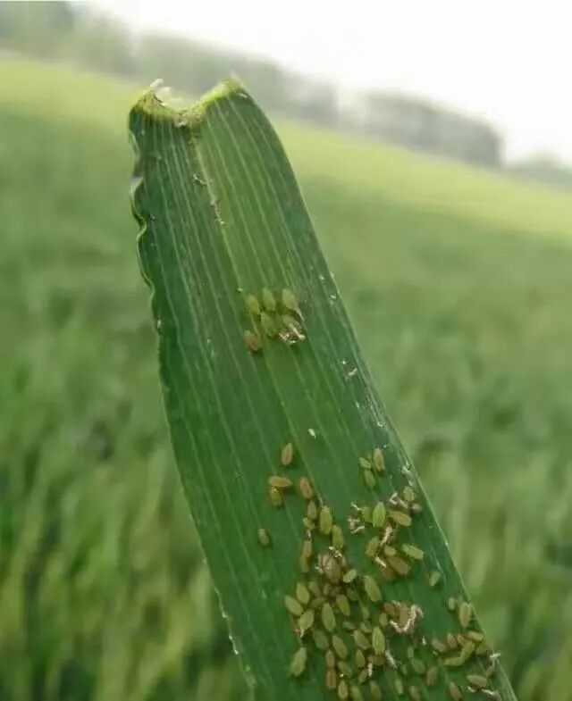 三、蚜虫为什么防治难? 1、繁殖速度快,抗药性强有些蚜虫属于孤雌生殖,所谓的孤雌生殖即蚜虫单性不需要交配就可以繁殖蚜虫,并且繁殖速度特别快,我们经常在小麦叶片上会看到,一个蚜虫身后跟着四五排的蚜虫。因蚜虫繁殖速度快,一旦喷施农药无法杀死蚜虫,其下一代的抗药性将会逐步加强,给后期防治带来更加的困难,这就是小麦到穗蚜时,很难防治的一个主要原因。 2、密植播种量大,偏施氮肥旺长这几年农户种植小麦普遍播种量大,小麦分蘖后特别稠,农户在喷施农药时,药液很难直接喷洒到小麦的下部,导致部分蚜虫很难杀灭,后期导致蚜虫的抗药性逐步加强。偏施氮肥造成小麦旺长现象比较严重,这样的施肥现象也会造成蚜虫的多发。 3、及时防治不到位因小麦蚜虫繁殖速度的特别快,有些农户发现小麦田蚜虫并不太多,因防治不及时等过了2天再去地里,就会发现蚜虫已经布满大量叶片或者穗部,带来不必要的防治麻烦。 4、一种农药用到底所谓的使用农药错误,这里指的是农户习惯使用一种农药用到底的方法,这样会导致蚜虫对某一种农药产生极强的抗药性,这就是为啥有些农户反映,到了穗蚜防治时,发现以前防治蚜虫效果非常好,到了穗蚜不管用的主要原因。