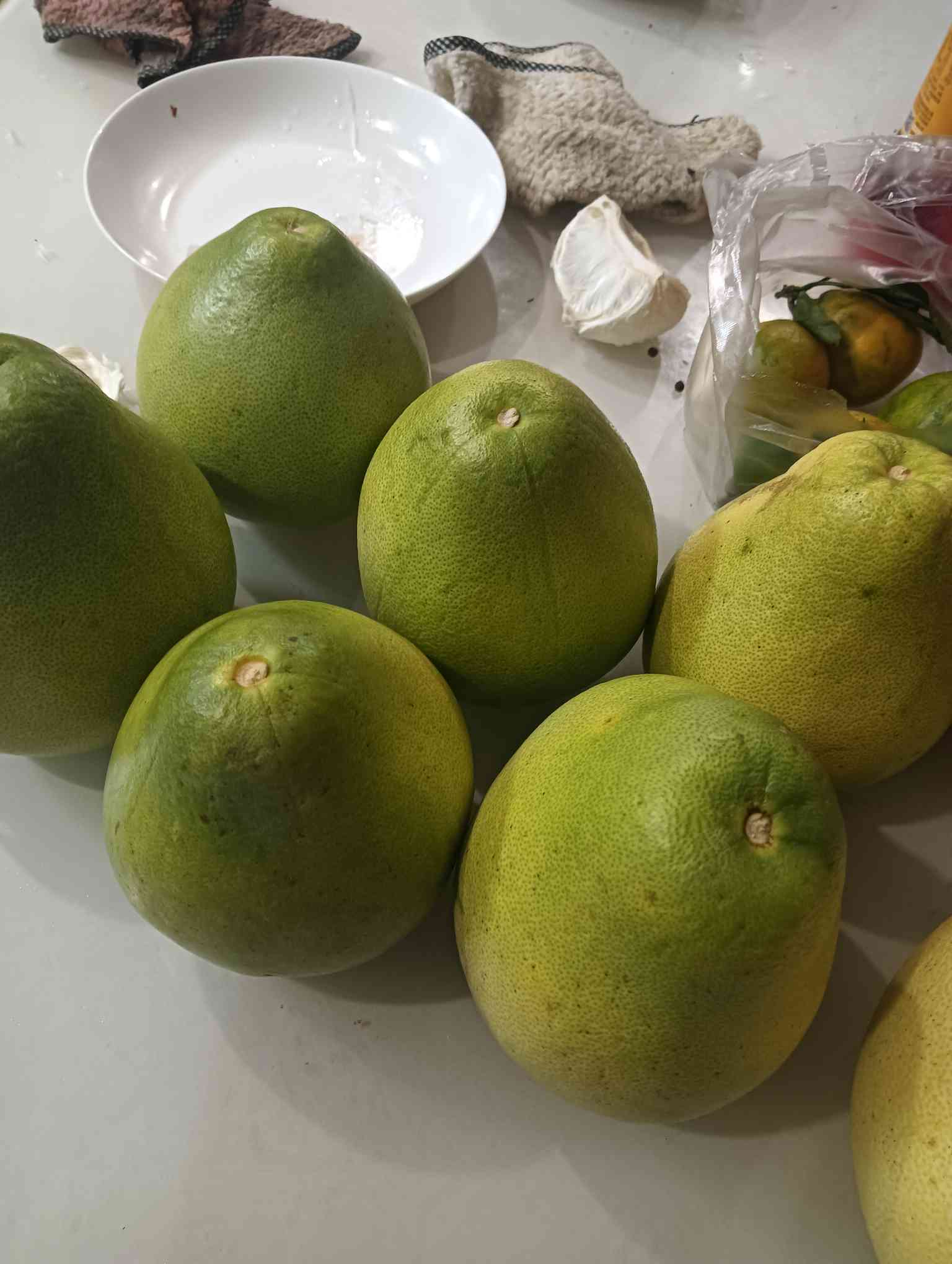 个头大,扁平,甜中带酸,每年都会买些来吃,今年酸度大一点,之前的都有些籽,今年却都无籽。而且明显比冰糖柚好吃。