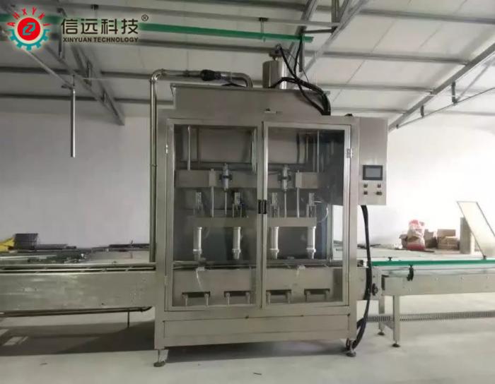 安徽水溶肥设备厂家-对于购买液体水溶肥生产设备,大家普遍面临的一个问题就是选择厂家,面对市场上如此多的水溶肥设备厂家,真的不知道该如何选择。下面来了解一下安徽液体水溶肥生产设备厂家-安徽信远。 安徽信远水溶肥设备厂家在全国多地都有水溶肥设备样板工程案例,具体细节可来电咨询189-5512-2736(微信同号) 设备介绍及要求: 1) 反应釜 规格3000L,立式,三层带搅拌带保温,材质:内外锅采用304不锈钢,外保温板不锈钢,保温材料岩棉。钢板厚度:内5mm夹套4mm包皮2mm; 加热方式:电加热,加热功率总72KW(分四段控制,每段功率为18kw) 搅拌装置:电机功率5.5KW,60r/min; 进出口:固体进料口一个,液体进料口3个(预留孔直径50mm),出料口1个; 2) 转子泵 1.电机功率:5.5kw ,流量:>10m3/h,出口压力0.1-0.6mpa,全不锈钢结构。可与计量高位搅拌缸料位感应开关联动实现自动控制泵送工作启停,无需人工干预。该机适用于各类流体的自动泵送。耐高温、对泵送物料无破损、运行平稳、无噪音;便于维护。 2. 功率5.5kw ,流量>10m3/h,出口压力:0.1-0.6mpa,全不锈钢结构。 3) 双联过滤器 分为粗细两级过滤,第一级为80目不锈钢过滤网,第二级为150目不锈钢;密封垫为食品级耐温耐油硅橡胶,过滤通量与整条生产线匹配。过滤能力10m3/小时,过滤面积0.3m2。 4) 称重式灌装机 ①称重式自动灌装机,由直线排列的秤台(带辊道),链条推杆进出瓶机构,快、慢速灌装(带气缸下潜)机构,进料过渡料箱,称重控制仪表及可编程控制单元组成。该液体灌装秤可以满足多种液体自动灌装的需要,可满足无泡沫、有泡沫液体的灌装。 ②设备特点: a) 采用陕西中航电称重传感器和专业控制仪表,确保了灌装计量的高精度。 b) 采用快、慢速灌装阀,在保证计量精度的同时不影响整体灌装的速度。配备电机驱动灌装头下潜机构,平稳下潜,采用液面上或液面下灌装。 c) 灌装头加可转动接液杯,灌装完成后接液杯将灌装头上残留的物料收集住,防止物料滴漏污染瓶口。 d) 称重控制仪表具有标准RS -485接口,系统采用数字控制,调整及设定均在触摸屏中实现。可设定毛重或净重方式灌装,实际灌装量即时在触摸屏中显示,方便直观。 e) 空桶检测,无桶不灌装;防撞桶设计。 f) 独立电气箱密封设计,布局合理,方便检修,主要部件(PLC可编程控制器、人机界面、变频器、开关电源等)均选用法国施耐德国际著名进口品牌元件,确保了设备的稳定运行。 5) 自动压盖机 ①自动塑料桶滚压压盖机主要用于开口桶、涂料桶、润滑油桶、包装桶、油漆桶、手提桶(方便桶)系列的标准桶封盖的必备专用工具。 ②广泛用于制桶、制罐、润滑油、涂料、化工、石油、粮油、等液体包装行业的必备用品。 ③压盖机是专门为国际通用的标准桶封盖而设计的。它的结构合理、制作精确、外形美观、操作方便。用户开始使用时,只要调整好主轴上的螺母位置后便能正常使用。辊道自动输送及自动光电感应。 ④主要零件采用钢材做成,具有坚固耐用、磨损小、机械强度高、不易折断、封盖严密等优点。 ⑤压盖方式:两次压盖(先压一半、再压一半)。 ⑥控制方式:电子—气动控制 ⑦输送方式:辊道自动输送具备压盖时间可调,排气功能,无鼓桶盖现象。压盖紧密,无泄漏自动感应光电。