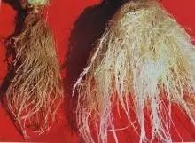 芹菜根系左为缺硼,右为正常(图片来源:网络)