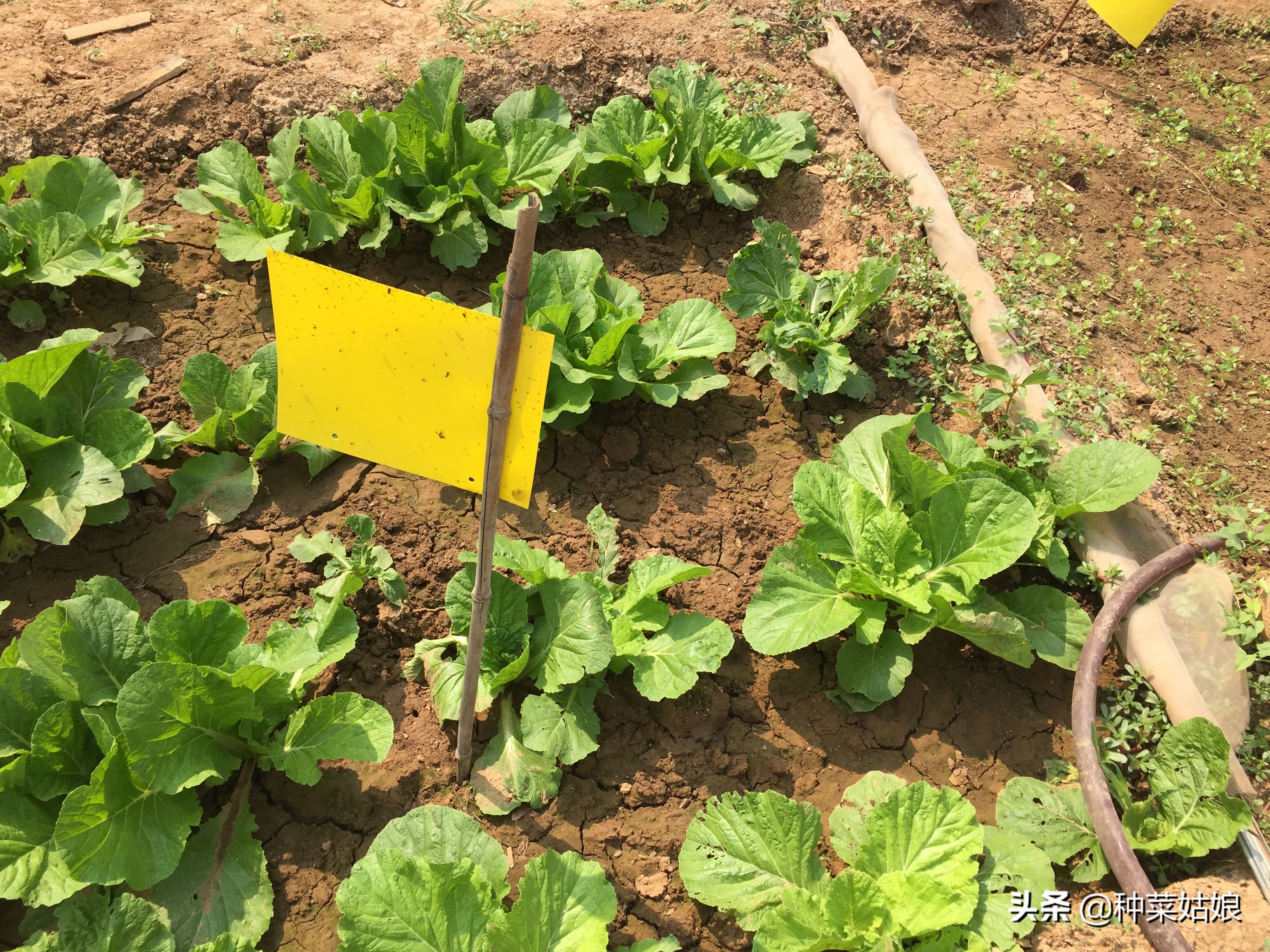 田间悬挂黄板能够防止白粉虱、菜粉蝶等 二、菜青虫的防治方法[size=; font-size: 1.059em,1.059em]1、药物防治:我们每年都会种一些白菜、萝卜、甘蓝等,防治菜青虫最有效的方法还是得喷药。可以喷施高效氯氰菊酯,也可以喷施生物杀菌剂苏云金芽胞杆菌,连续喷施3次,3-5天一次,基本就能够把菜青虫消灭干净。很多农药都是低度低残留的,不会对人体产生什么危害。[size=; font-size: 1.059em,1.059em]2、土方法防治:如果种植的比较少,也可以用一些土方法防治,首先做好预防工作,比如在田间悬挂黄板,消灭成虫;其次人工捉虫和自制杀虫剂。[size=; font-size: 1.059em,1.059em](1)人工捉虫[size=; font-size: 1.059em,1.059em]菜青虫特别适合人捉。每天早晨蔬菜上还有露水时,菜青虫就藏在叶片底下或者菜心里一动不动,一逮一个准儿。找到菜青虫的方法也很简单,看虫眼和虫屎,只要有其中一样,重点检查,一定能够找到菜青虫。[size=; font-size: 1.059em,1.059em](2)自制杀虫剂[size=; font-size: 1.059em,1.059em]在家庭蔬菜种植中,会用到一些自制杀虫剂。常用的有的辣椒汁、大蒜汁、大葱汁、洗衣粉和肥皂溶液等只要是对蚜虫和红蜘蛛这些小虫有些许效果,对防治菜青虫效果不大。[size=; font-size: 1.059em,1.059em]但是黄瓜植株和丝瓜植株有特殊气味,把植株磨成汁喷施在白菜或者萝卜上,能够驱赶菜粉蝶,阻止其在白菜、萝卜上产卵。 白菜捆绳后菜青虫的危害就很小了  白萝卜主要食用根部,即使叶片有点菜青虫也不会太影响生长 [size=; font-size: 1.059em,1.059em]随着大家对蔬菜品质要求的提高,我们特别希望在蔬菜种植中少用或者不用农药、化肥。于是就会执着于使用一些土方法来栽培管理蔬菜。比如喷施醋或者糖来代替化肥,喷施自制杀虫剂代替农药。[size=; font-size: 1.059em,1.059em]但是这种代替只能是部分代替,要想种菜长得好,我们可以多施有机肥,这样在栽培管理中少施化肥;种植之前做好土壤和种子、蔬菜幼苗的消毒工作,消灭虫源,保证苗强苗壮,那么虫害自然就少,喷药也就少了。