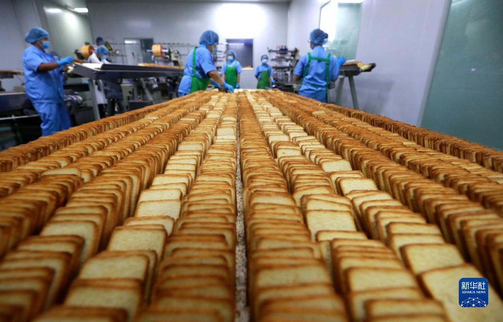 8月18日,在河北马家麦坊食品有限公司馍片车间,工人在整理馍片。 近年来,河北省石家庄市栾城区积极探索农业产业化经营发展模式,以“培育主导产业、强化龙头带动、延伸产业链条”为主要思路,培育发展农业产业联合体,打造高附加值农产品,进一步带动全区农产品加工行业产值上升,带动农民增收致富,提升当地农业产业融合发展水平。 2021年,石家庄市栾城区18家农业产业化联合体成员总户数8733户,辐射带动农户72409户,联合体营业收入达38亿元。 新华社记者 骆学峰 摄