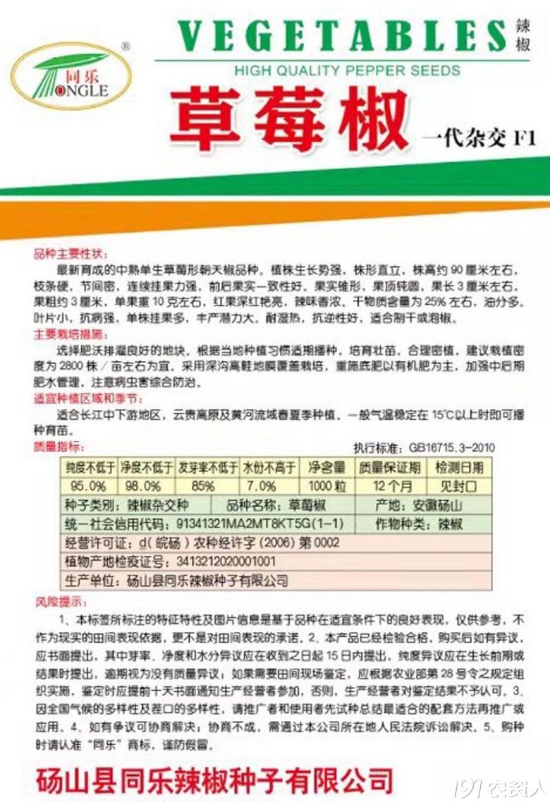 新育成的中熟单生草莓形朝天椒品种,株形直立,生长势强,株高90厘米左右,枝条硬,节间密,连续挂果力强,前后果实一致性好。果实锥形,果尖钝圆,具有较高的食用和观赏价值。果长3厘米左右,果粗约3厘米,单果重10克左右,红果深红艳亮,辣味香浓,干物质含量25%左右。油分多,叶片小,抗病强,单株挂果多,丰产潜力大,耐湿热,抗逆性好,适合制干或泡椒。百度“草莓椒1号”即可了解该品种更多特性。