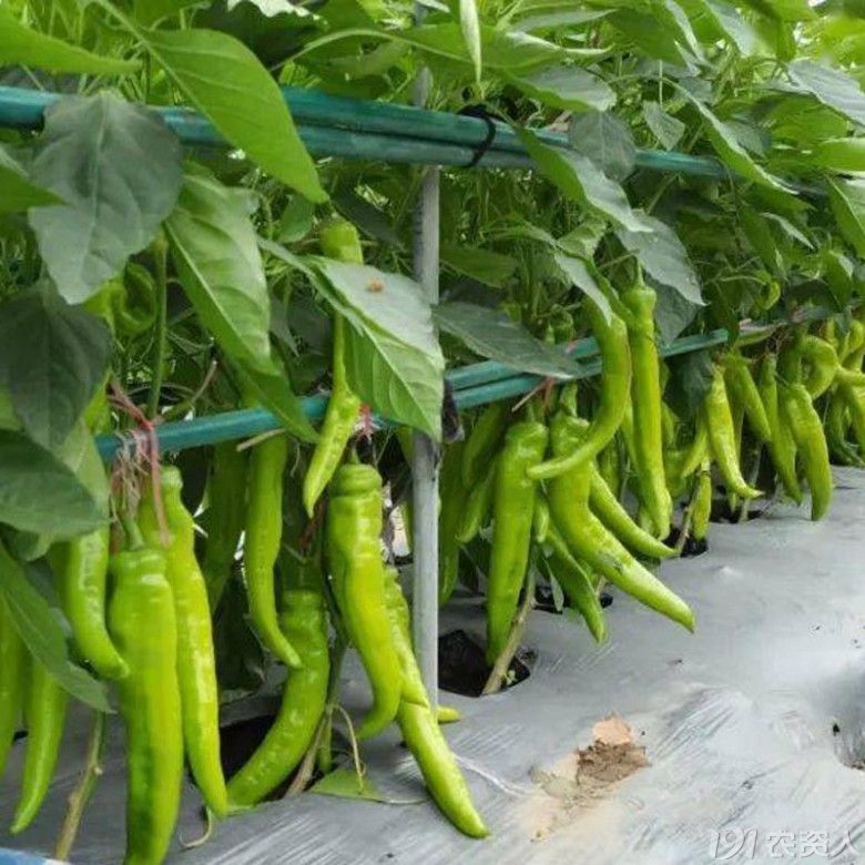 国椒五号是三系杂交黄绿皮大尖椒品种,种早熟,植株生长健壮,连续座果能力强,采收期长,产量高。果长28-32厘米,果径4厘米左右,单果重100-120克,大果可达180克。果匀称顺直,空腔小、耐储运,辣味适中。百度“国椒五号”即可了解高品质更多特性。
