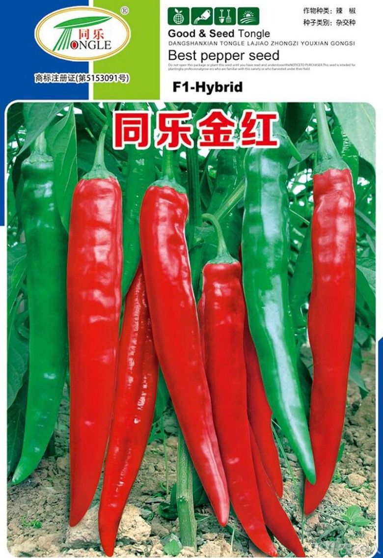 同乐金红,中熟,植株生长势旺,连续座果能力强,后期座果优秀,果长18cm左右,果宽2.0cm左右,单果重25克左右。果实光亮顺直,皮薄,肉厚,果型整齐而美观,嫩果深绿,红果鲜艳亮丽。是鲜椒走市场,腌渍、制辣椒酱较理想产品。一般亩产3000公斤左右。百度“同乐金红”了解该品种更多信息。