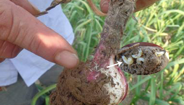 危害大蒜的地蛆,还危害韭菜、大葱等,主要以幼虫聚集在作物根部,地下鳞茎,和柔嫩的茎部,以春季和夏季危害严重,可引起地下鳞茎腐烂等。
