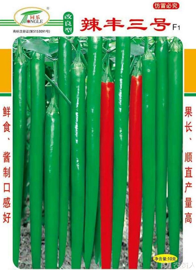 改良型辣丰三号属中熟线椒品种。植株生长势较强,株型好,分枝多,叶片小,果顺直,长22厘米左右,果宽约1.5厘米。青果深绿色,老熟果红色鲜艳,果实硬度好,耐储运,单果重22克左右,辣味浓香,坐果性好,综合抗性强,适合藓椒上市或酱制加工。如想了解该品种更多信息,请百度“改良型辣丰三号”。