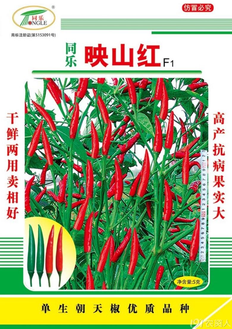 特别提醒:现已发现在四川、重庆等多地有不发分子冒充我公司映山红朝天椒种子出售,请购买者看清包袋正面竖排两行红字“高产抗病果实大,干鲜两用卖相好”,凡没有这 两行红字的,请谨慎购买,以免买到假种子。购买前可百度“映山红朝天椒”了解详情。