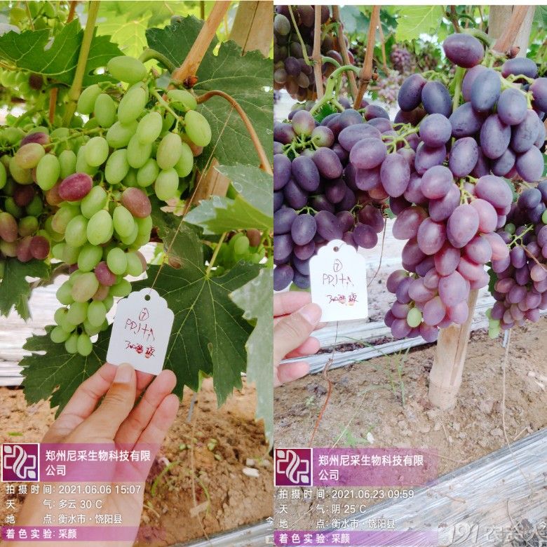 观察结果:喷施过的转色均匀,基本达到90%以上,糖度提升2个点左右。