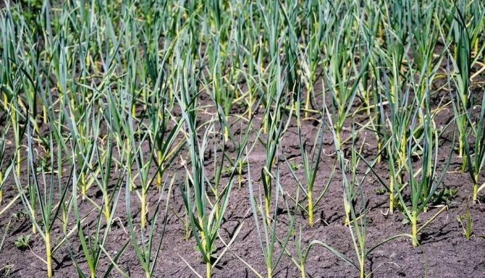对地势低洼的蒜田,在降雨或者灌溉之后要及时排涝,否则大蒜根系会因得不到充足的氧气而无法生发新根,甚至产生还原性物质损伤根系,影响对养分和水分的吸收运输。