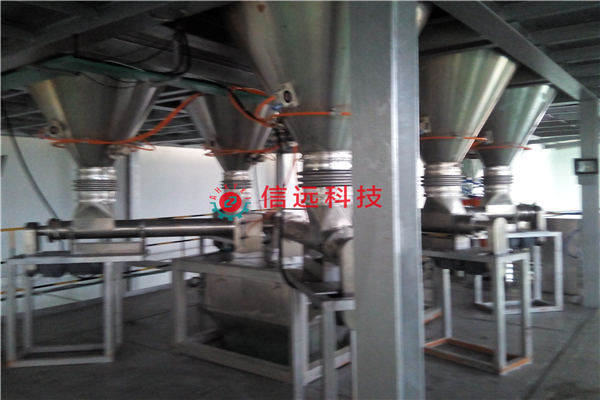 按照设定的重量配比,自动完成原料的配料。配料系统按照设定的次序和重量,依次完成各物料的配料。先料仓1卧螺旋机向称重秤斗加料,开始为大供料,物料1重量接近设定值,自动变为细供料,重量达到目标值,1号仓停止加料;按同样原理依次完成2号料、3号料、4、5、料的配料;种物料配料完成,得到总控系统放料信号,秤斗开关门机构动作,打开料门放料;物料排出干净,自动关闭料门,开始下一配料过程。