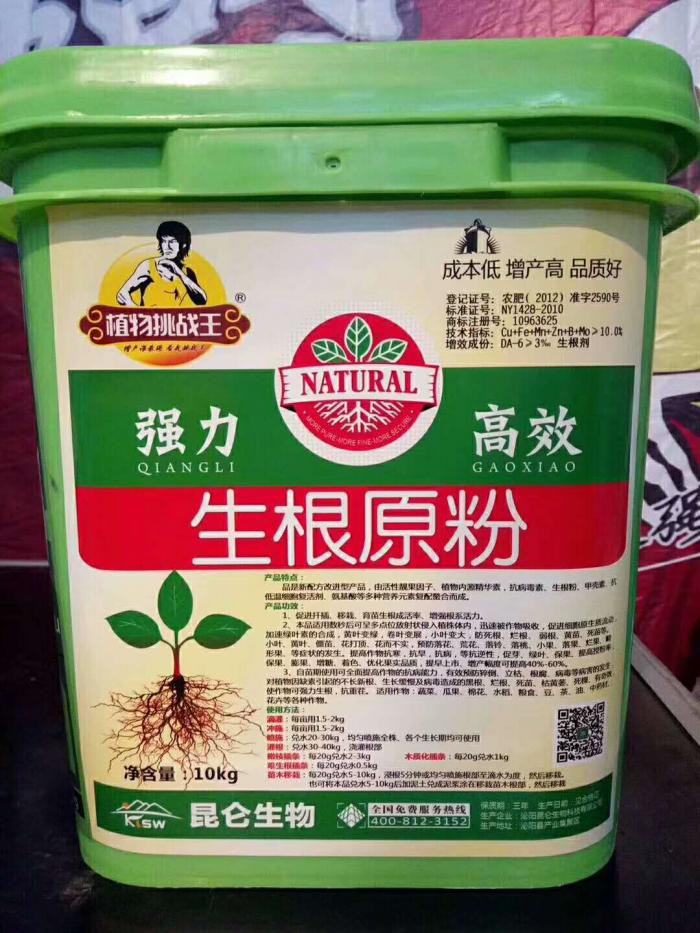 生根原粉:本品是新配方改进型产品,由活性靓果因子、植物内源精华素,抗病毒素、生根粉、甲壳素、抗低温细胞复活剂、氨基酸等多种营养元素复配螯合而成。