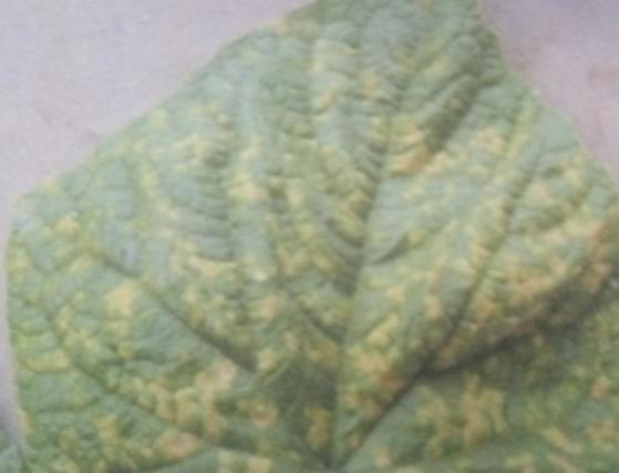 【黄瓜靶斑病与霜霉病的区别】靶斑病病斑枯死,病健交界处明显,并且病斑粗糙不平;而霜霉病病斑叶片正面褪绿、发黄,病健交界处不清晰,病斑很平。
