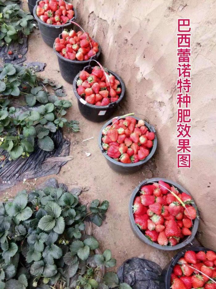 生产上要根据果子大小,选择钾含量不同的肥料,随着果子的生长,钾含量随之提高。一般可在果实蚕豆大小时,追施一次高钾水溶肥(每亩5kg),每10-15天施肥一次,连续追施2-3次。此时期追施钾肥可促进幼果快速膨大,延长采收期,让草莓吸收更多的光照,积累更多的养分,进而提升甜度。