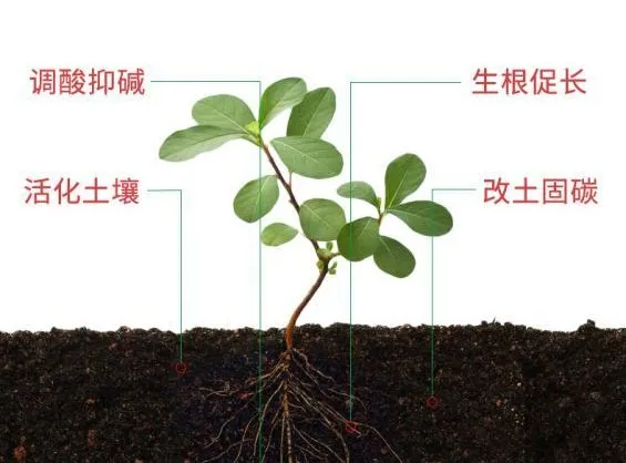 2、改土固碳:本品能够重构土壤团粒结构,消除板结,使土壤疏松多孔,提高通透性及保水保肥能力:能够活化、络合中微量元素,提高利用率;钝化重金属,减轻污染危害;碳基营养,可以被作物直接吸收,具有天然固碳作用。