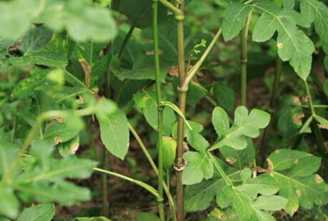 选择排水良好的地块栽培,采用高垄栽培的方法,雨后及时排水,降低田间湿度。整地时进行土壤消毒,并施入充分腐熟的有机肥。牛膝生长期适时中耕除草、浇水追肥,提高植株抗病能力。