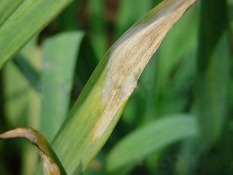 危害叶片,初期病斑呈水渍状,后变为灰白至灰褐色小斑点,由叶尖逐渐向内扩展,病斑呈椭圆形或纺锤形,后期扩大重叠呈条形灰白色大斑,表面生有灰褐色霉层。危害蒜头形成灰褐色病斑,湿度大时生出浅黑色霉状物。随气流、雨水、灌溉水传播。该菌生长适宜温度范围在15℃—30℃,侵染适温为15℃—21℃。地势低洼、排水不良、易积水的地块发病重。