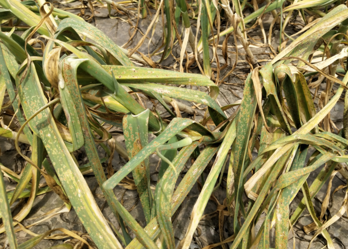 主要危害蒜叶及蒜薹,发病重时叶鞘上也能发生。初期在叶表面形成椭圆形或纺锤形稍隆起的病斑,病斑较小,中央逐渐变成橙黄色。适宜侵入温度为10℃—23℃,在湿度大或有水滴时,9℃—19℃可侵入,一般蒜葱混种田块发病重。最近几年是打算比较头疼的病害,特别是在江苏邳州地区锈病特别严重。