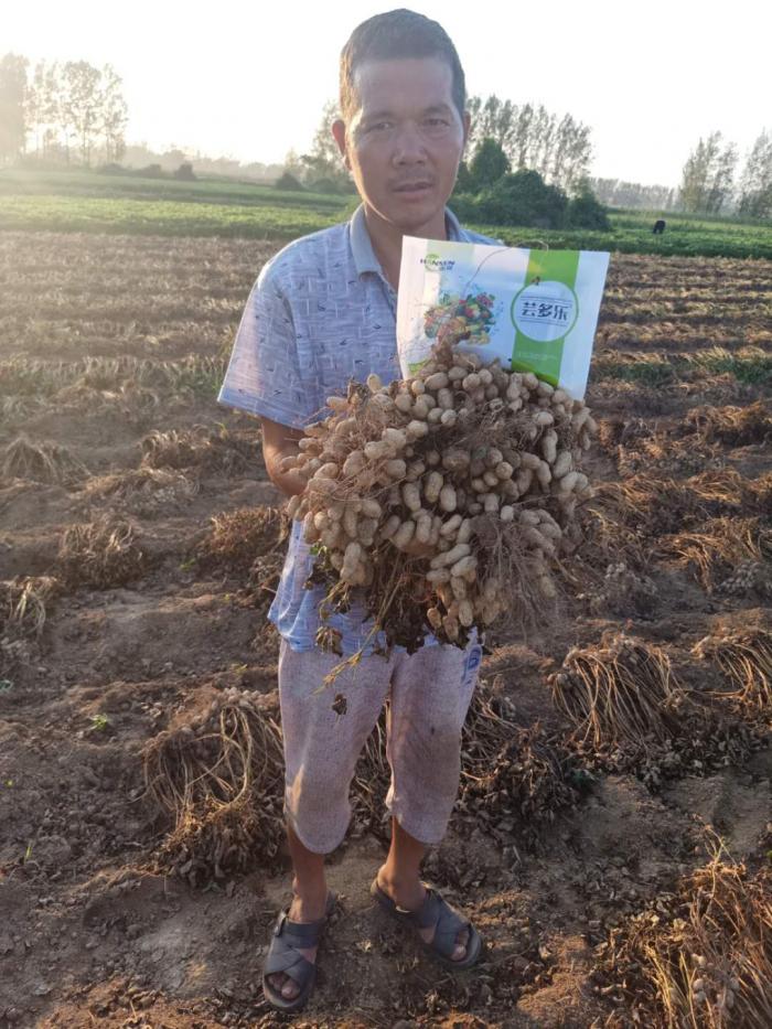大叔对自家的增产十分满意!芸多乐花生增产增收!