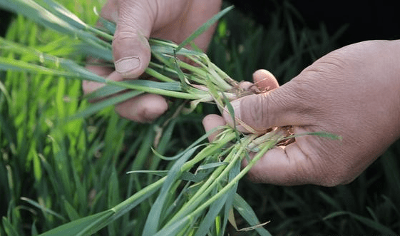 ② 长势过旺的麦苗,早春期间不再追肥,推迟到拔节期。除了氮肥以外,也要配合钾肥的使用,每亩可用氯化钾15斤。因为前期麦苗生长已经消耗了大量的养分,后期可能会脱肥,而出现籽粒不饱满的情况。