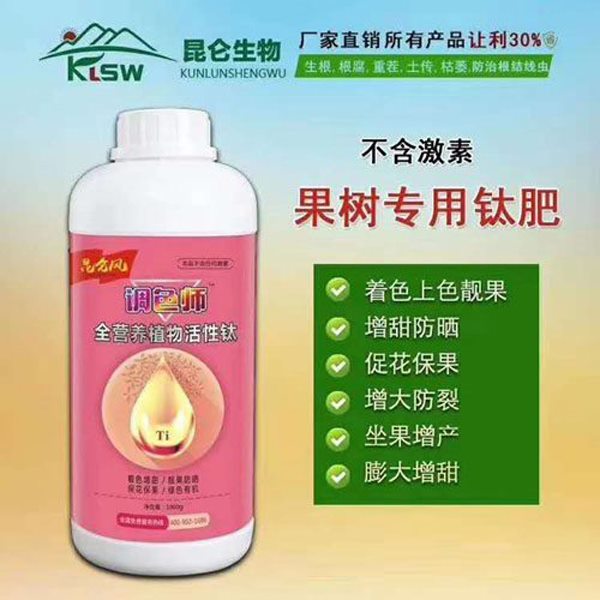 钛是一种有益微量元素,钛能增强植物的光合作用,提高叶绿素含量和固氮酶、促进干物质的积累,能调动内源激素向生长中心输送,促进植物对氮磷钾及其他微量元素的吸收和运转,提高果实的着色度、含糖量和维生素C含量,改善品质,增加产量。