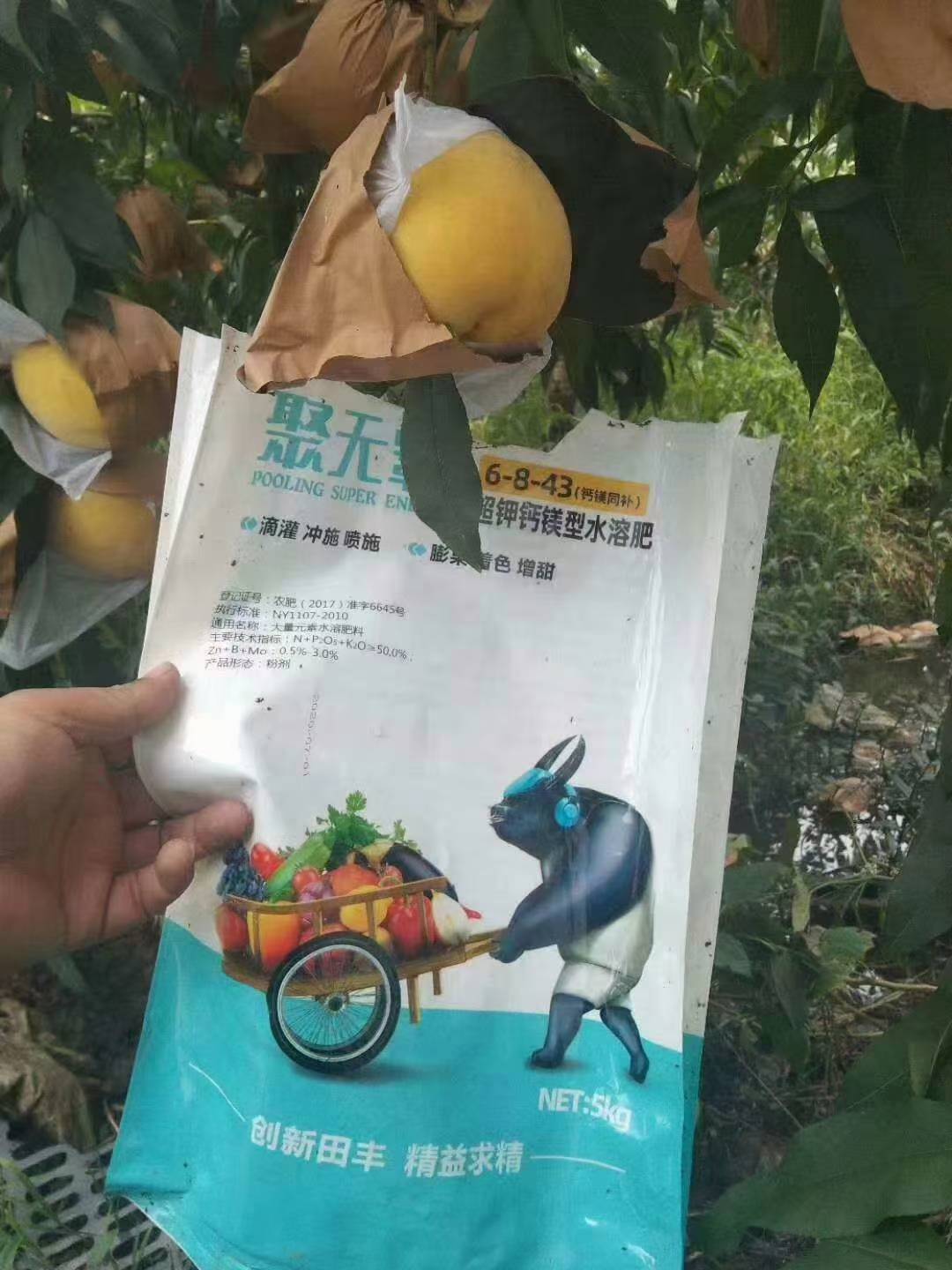 江苏南通王经理去年在网上咨询桃树用什么肥料桃甜,说自家的黄桃着色不好,而且很多桃子个头都比较小,当地技术人员说是用肥的问题。通过不断的对比,感觉聚无霸超钾钙镁水溶肥效果还是比较不错的,很多农户用过之后都说效果好,性价比高,连续多次使用效果比较好。经过厂家技术人员推荐,王经理从我们厂家发了超钾钙镁水溶肥,并打算作对比。看这是用超钾钙镁水溶肥的图片,膨果效果更加明显,且桃色鲜艳,甜度更高。