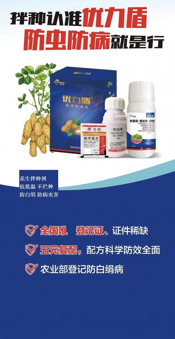 是一款正规登记花生拌种剂,正规登记防治花生白绢病、蛴螬、根腐病等病虫害;