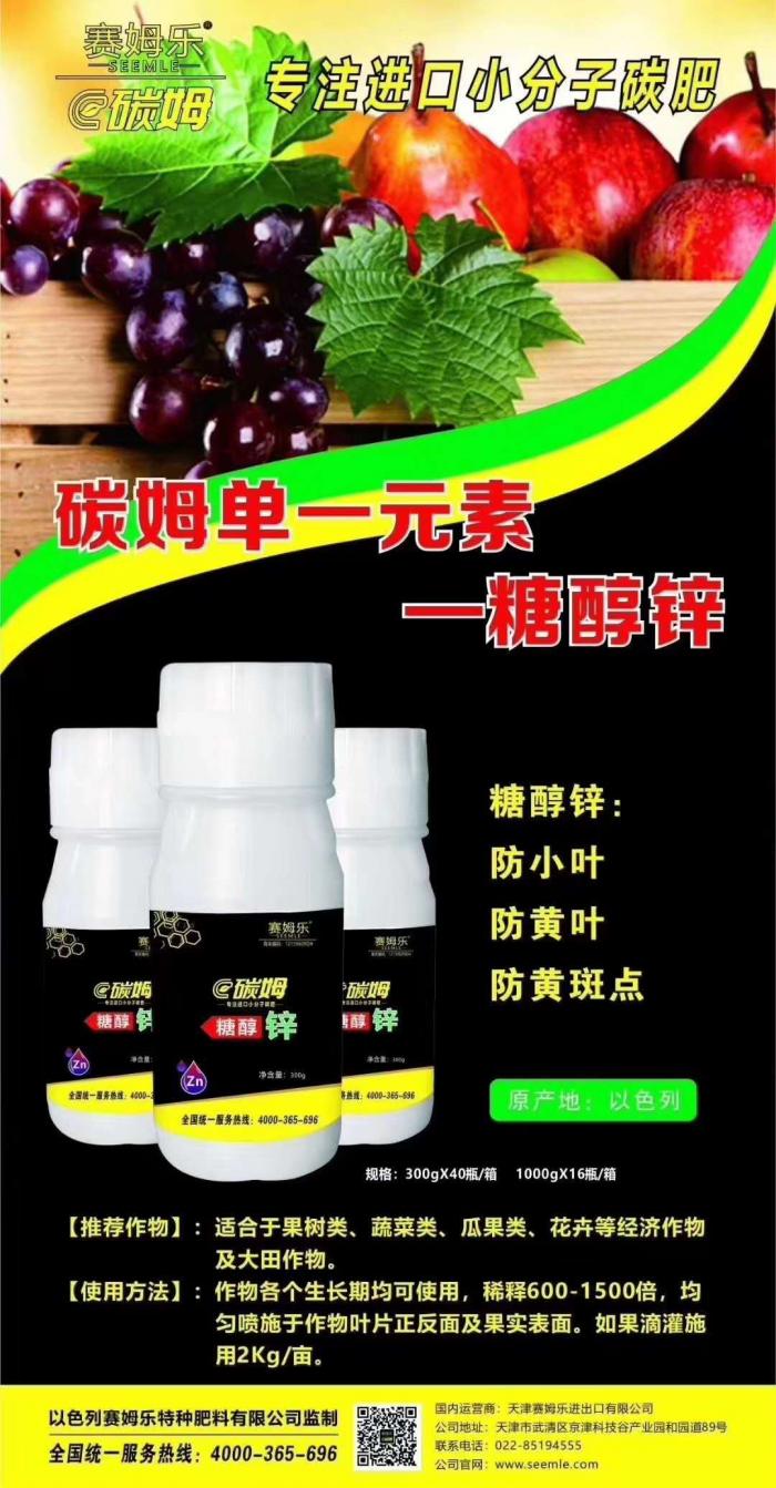 据了解施用糖醇锌对作物因缺锌导致的玉米“花白苗、果穗缺粒秃尖”、水稻“僵苗、缩苗、坐蔸”、果树“小叶病、花叶病、缩叶病”、簇生、丛生症、小果症、生长发育停滞、植株矮小、节间缩短、叶片发黄失绿症、黄白斑点、作物根系生长不发达、落花、落蕾、幼叶卷曲、生长萎缩均具有明显效果。喷施后可被作物迅速吸收,使叶片肥厚光亮,茎叶健壮,果实膨大快,产量提高,品质改善。
