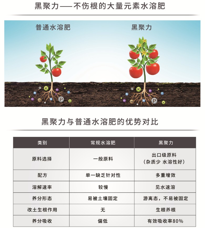 黑聚力®矿钾大量元素水溶肥增产不伤根勒夫黑聚力®水溶肥 在市场推广至今,喜得农户赞赏——“比常规的水溶肥见效快、后劲足”,黑聚力®产品到底有什么“过人之处”,来随小编仔细学习一下吧!一、黑聚力 产品说明
