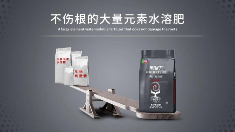 本品采用有机无机相结合的配方工艺,其中有机元素矿源黄腐酸钾是氮肥的缓释剂,是磷肥的增效剂,是钾肥的保护剂,可有效提高肥料吸收利用率15-30%。增产不伤根的水溶肥,不二之选——黑聚力®!