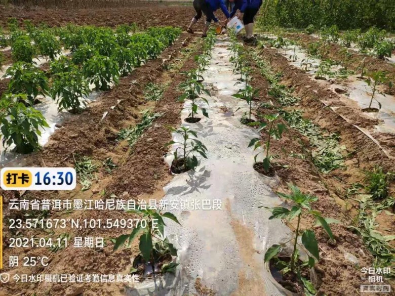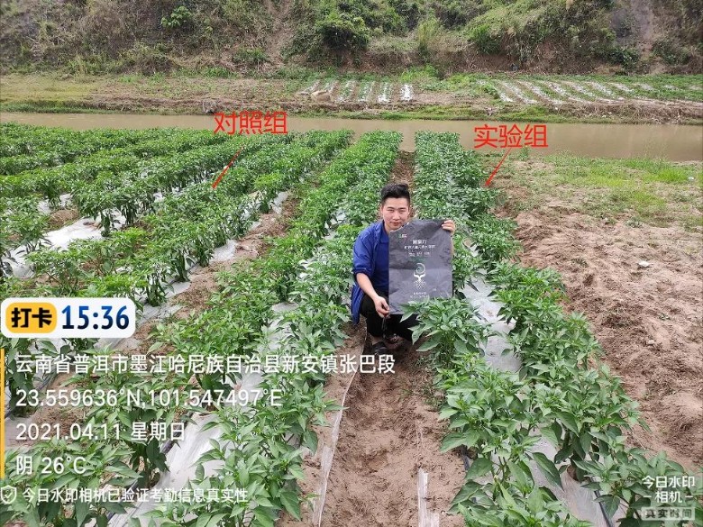 黒聚力辣椒篇作物时期:生根、提苗示范时间:2021年4月8日-11日示范地点:云南省普洱市墨江县新安镇方案:黑聚力5kg一亩