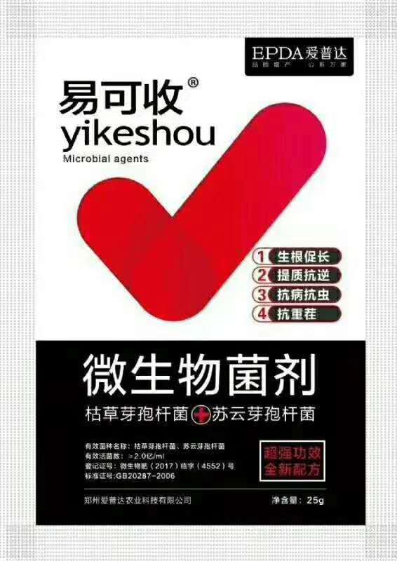 易可收复合微生物菌剂是爱普达农业生产的一款微生物菌剂,以枯草芽孢杆菌和苏云金芽孢杆菌为主要菌群。枯草芽孢杆菌用处大,可以对真菌、细菌引起的病害起到很好的预防效果。