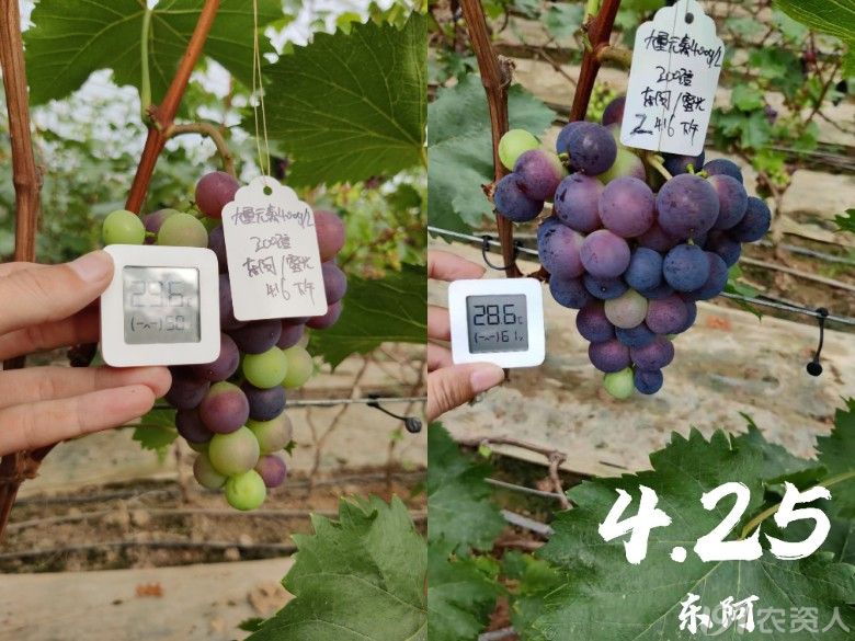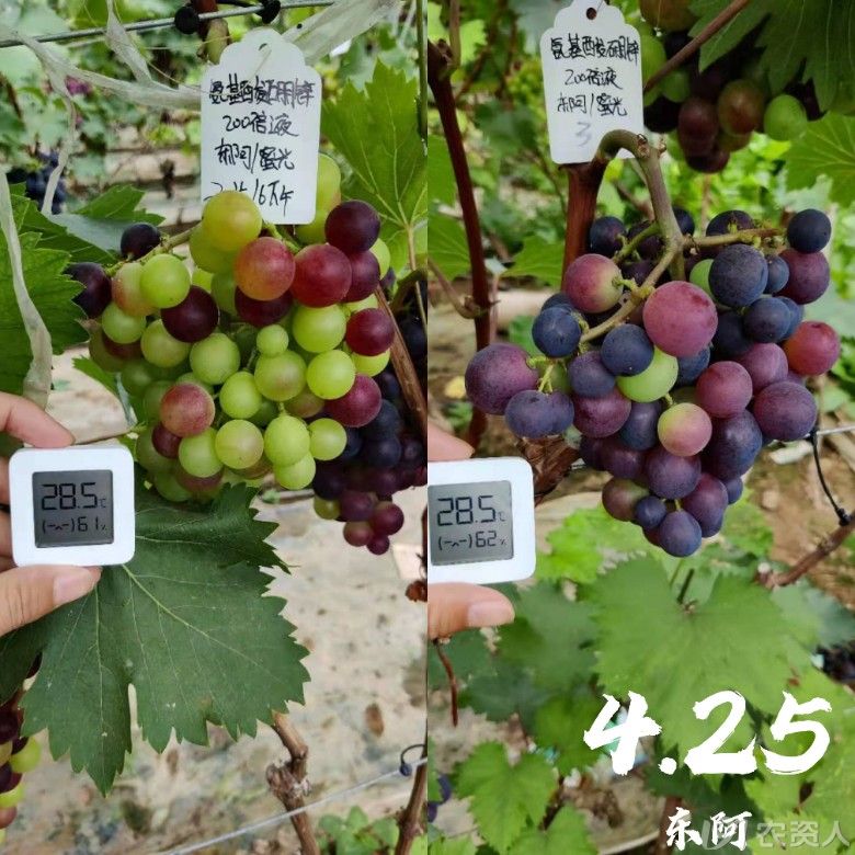 进入转色时期,葡萄叶绿素下降花色素苷迅速上升,果皮表面开始发生变化,果实膨大,果粉形成,糖升酸降,慢慢达到平衡,这时候果香漫漫,瓜熟蒂落;在这个优品质、高产量的重要时刻,果农们应该要怎么做?