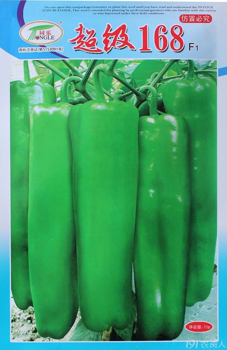 超级168牛角椒中早熟,果皮浅绿,光滑肉厚,耐运输。果长20厘米,单果重150克左右,抗病性强,品质好,产量高,一般亩产万斤左右,高水肥田有亩产7000公斤的潜力。百度“超级168大牛角椒”了解该品种更多信息。
