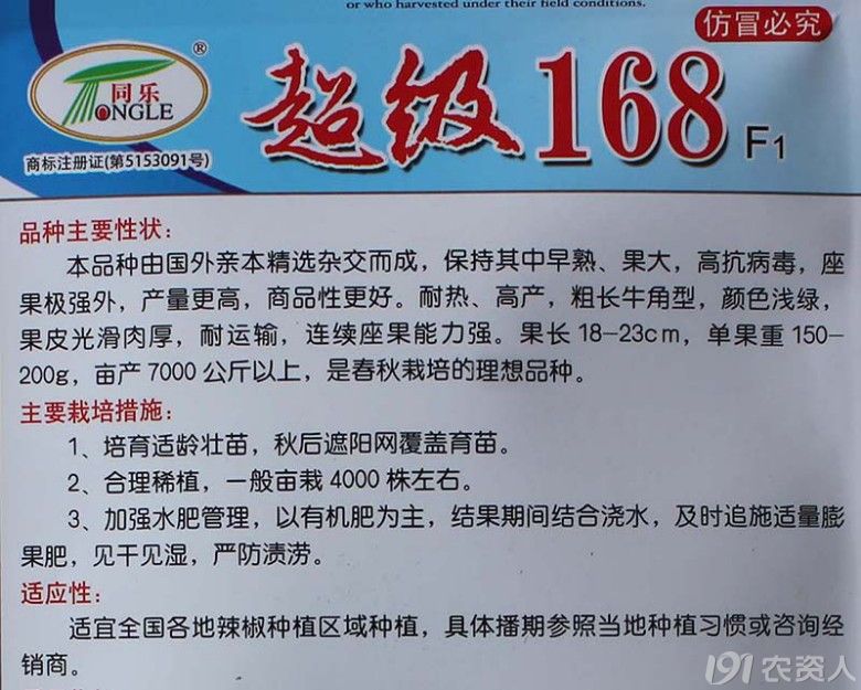 超级168牛角椒适应性强,全国大部分地区可以种植,既可露地种植,也可大棚及小工棚秋延迟栽培,经近年在全国多点试种,表现良好,深受百姓欢迎。