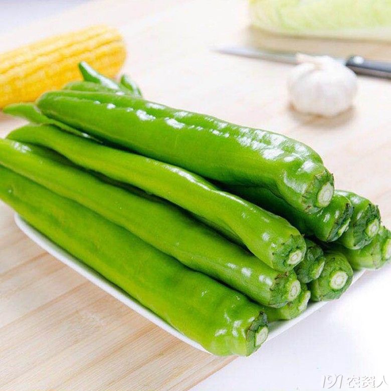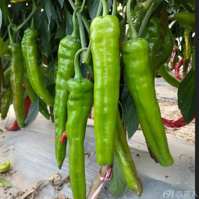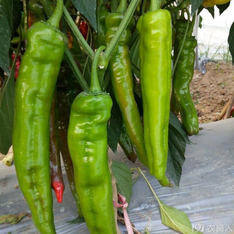 国椒五号是三系杂交黄绿皮大尖椒品种,种早熟,植株生长健壮,连续座果能力强,采收期长,产量高。果长28-32厘米,果径4厘米左右,单果重100-120克,大果可达180克。果匀称顺直,空腔小、耐储运,辣味适中。百度“国椒五号”即可了解高品质更多特性。